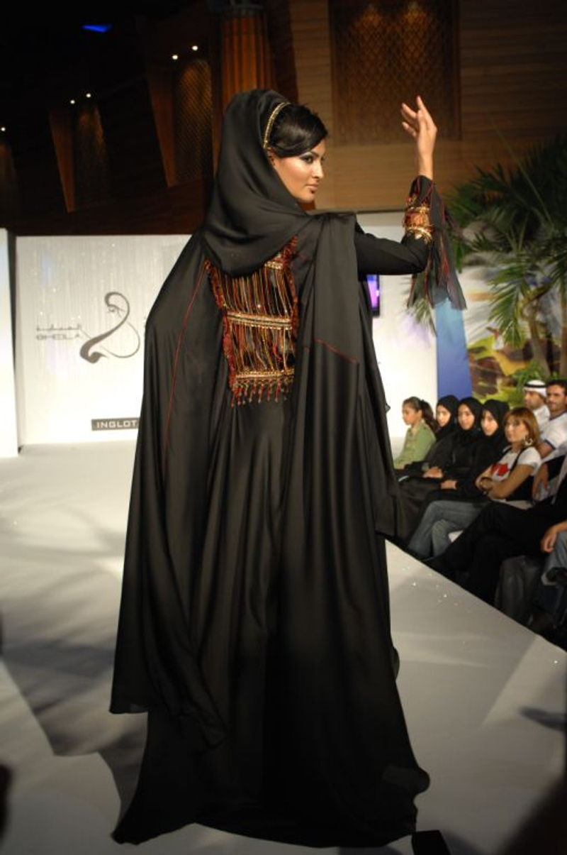 Верхняя одежда у заливских арабок - абайя и шейла (головной платок). В настоящее время в Заливе существует целая индустрия стильной мусульманской женской одежды, постоянно проводятся показы, меняется мода на крои и отделку абай, приезжают именитые дизайнеры и все это сопровождается огромной помпой. Только на моей памяти гремели последовательно кружева, Сваровски, рюши, плиссе, черная абайя и цветной платок, цветная абайя и черный платок, узкие, приталенные, широкие бесформенные абайи, из натурального шелка, из льна, смешанные композиции, такие орнаменты, сякие орнаменты - проще уже не следить за модой (а меняется она в среднем раз в 3 месяца), а носить то, что идет именно тебе. Я могу часами рассматривать где-нибудь в молле фланирующих арабок - абайи у всех разные и настолько интересные, что устать от смены моделей просто невозможно. Есть у них несколкьо общих мометов - все они черные, все - длинные (волочатся по полу), и все выглядят царственно (как любое грамотно сочетаемое макси, ИМХО). Шейла, которую повязывают особым образом на специально высокую прическу, смотрится своеобразной короной, прибавляющей женщине достоинства. Большинство арабок носят каблуки, походка у них неторопливая и плавная, они, как правило, никуда не спешат и не суетятся.