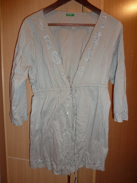 4. Юбка бежевая летняя, льняная, р-р 42-44, пару раз б/у. Цена - 150 руб. Карманы сзади, как и застежка. Спереди - небольшой запах по вырезу.