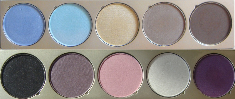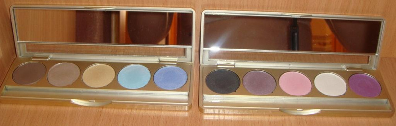 1. Палитра ES-3. Состоит из 2-х натуральных, коричнево-бежевых, песочного, нежной бирюзы и небесно-голубого оттенков, для создания дневного макияжа.