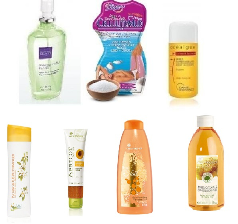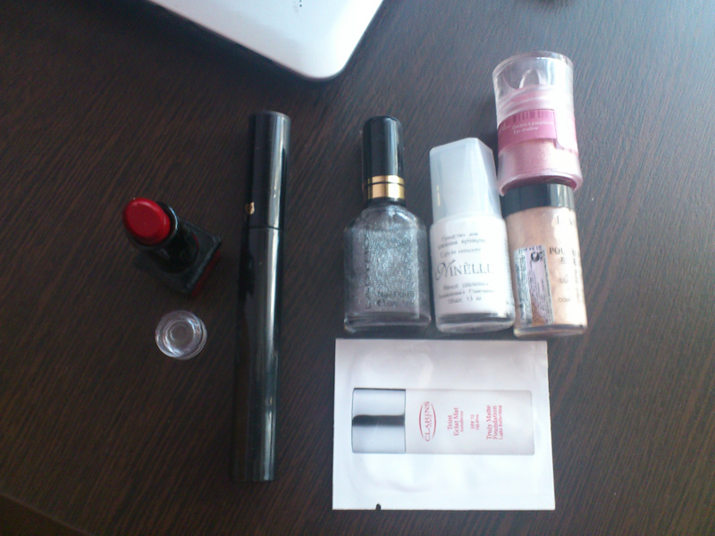 сверху вниз, слева направо: 3 пробника Ange Ou Demon Le Secret Givenchy, Very Irresistible Givenchy L’Intense, Clinique Happy Clinique, J`adore Eau de Toilette Dior , скраб для тела Clarins, мультивитаминный дневной крем для лица с cпф 15 Chanel, имбирный гель для душа Kenzoki, прессованная салфетка от идб - в подарок