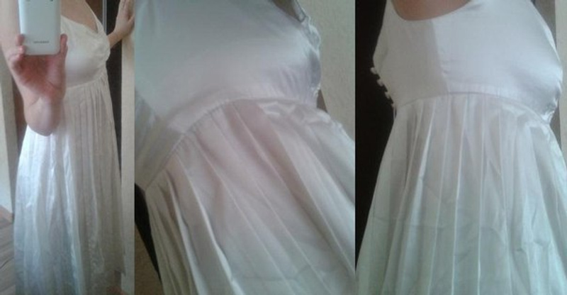 Платье очень простое, но красивое. На подкладе, с ремешком. По низу платья отделка - застрочено горизонтальными рядами.