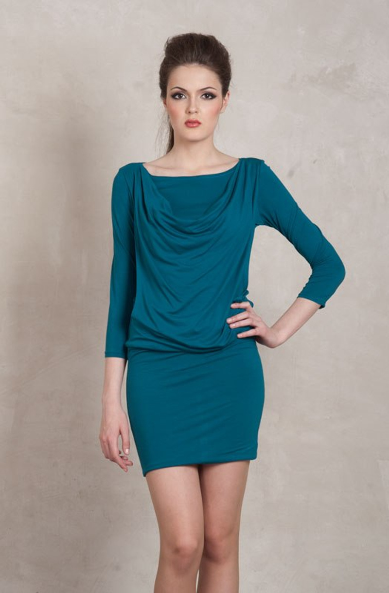 3. Платье Berschka c рисунком волка спереди. Рукава наполовину трикотажные, в пройме расклешеные, от середины трикотаж в обтяжку. По низу платье отрезное трикотажное, с замками по бокам. Цена 800 руб.
