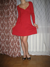 красное платье, размер 42 пару раз одевала ,висит без дела (красный не мое), талия "под грудью", немного расклешенное, хорошо облегает грудь (даже небольшую), к нему еще дополнительный поясок в цвет (вариант для волос), цена 850 руб.