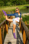 Кира часто в джинсах гуляет..так как лазиет везде.. в песке сидит.. и вот на не розовая кофта, красная бандана и розовые босоножки и на джинсах большой розовый бан..но это же мальчик! так как на ней же штанишки!!!Ааа... так вот в чем дело!