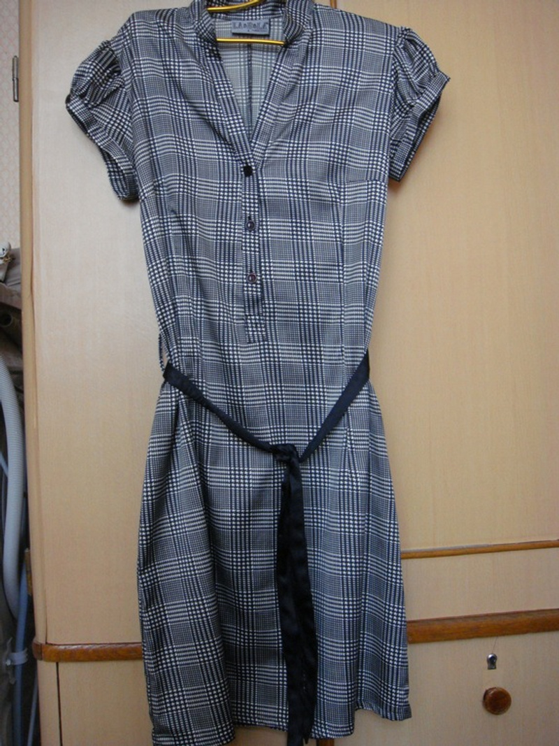 4. Платье "Плэнет" - трикотажное, из закупки шведской одежды, цвет какао. Р. 46, трикотаж плотный, но не толстый. В комплекте с платьем идет ремешок. Модель очень интересно смотрится - хорошо видно на фото с синим платьем, а цвет - как на втором платье. Цена - 500 руб.