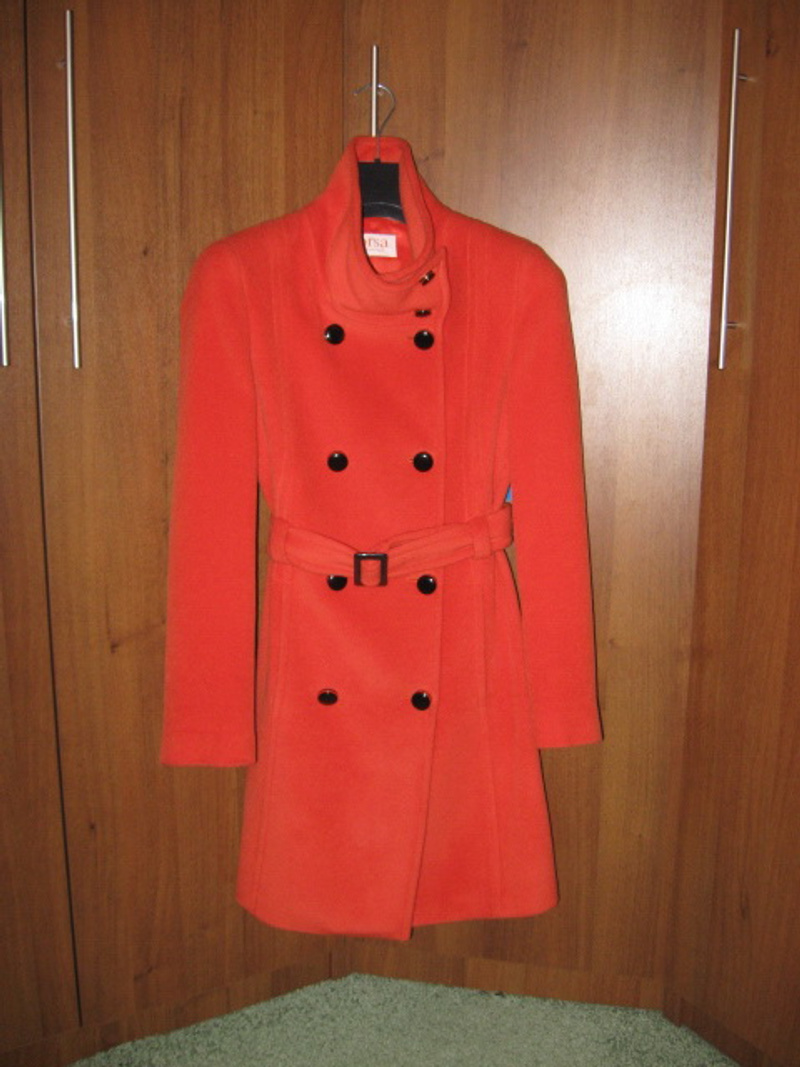 1. Пльто марка ORSA НОВОЕ. Покупала в "Леди энд Джентельмен" и не носила, т.к сильно похудела Размер 42-44. Пальто в реальности яркого оранжевого цвета, пуговки черные. Ткань потрясающая на ощупь, мягкая и очень теплая.