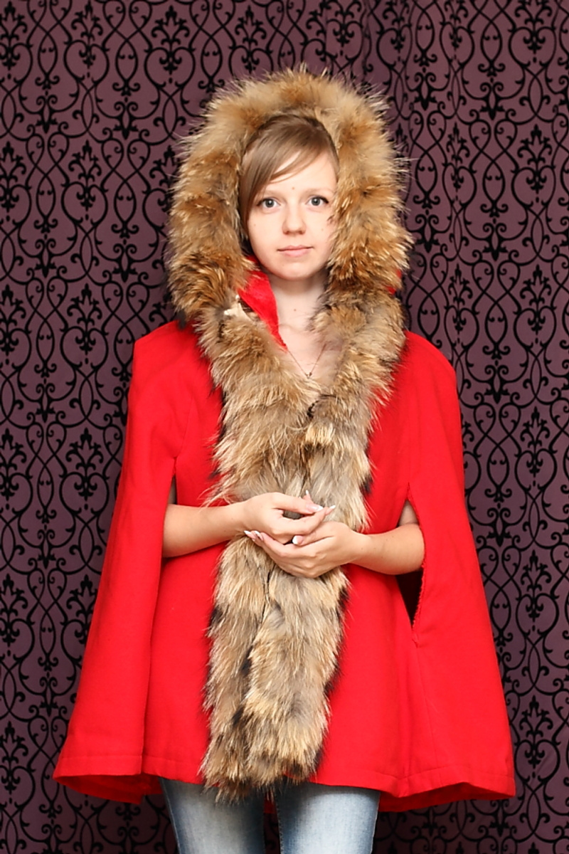 Силуэт полуприлегающий. Капюшон отделан пушниной чернобурка.Смотрится красиво,дорого.Рукава и низ изделия присборены. Пояс из кожи (не блестящий), завязывается. Застежка на крючках.