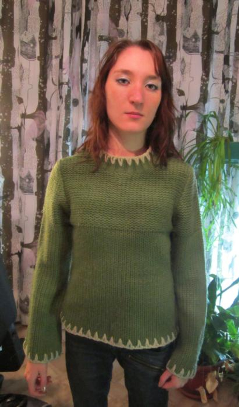 3. Кофта зеленая.Рукав немного расклешен. Теплая. Размер 40-42. 250р.