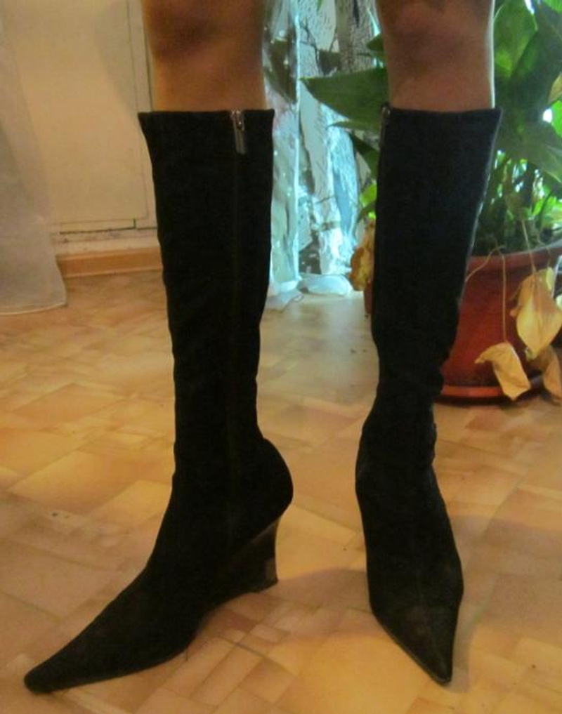 В ответ на: Продам новые сапоги, зимние, бренд Vitacci. р.40 (реально на 38,5-39), кожа натур., черные, до колен, замок на всю длину, евромех (мех до щиколотки, далее- байка), сзади декоративная молния. Мне подошли только на голую ногу, на носок/зимние колготки не надену. Моя стопа 25,5, на 25 должны быть хорошо. Арт. H0111-1731, можно еще посмотреть на сайте vitacci.ru. Сапоги красивые, оригинально смотрятся. По моим ощущениям, что на неполную ногу. По размеру они мне очень плотно, поэтому и продаю.