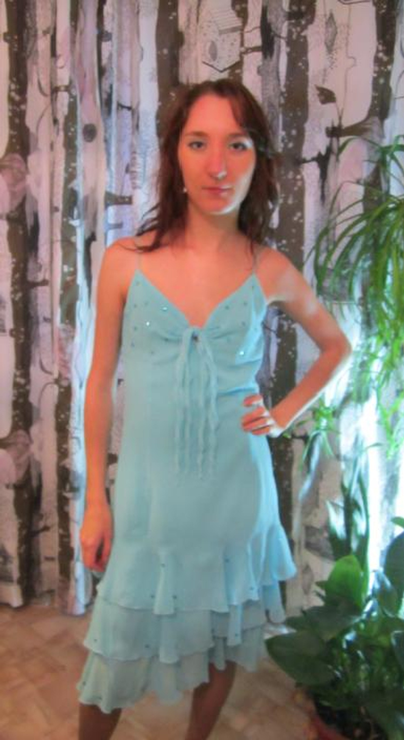 3. Платье голубое шифоновое. Размер 40-42. 500р.