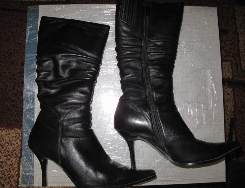 высота голяшки - до каблука, мерила сбоку по голяшке - 45 см, получается как раз до колен.
