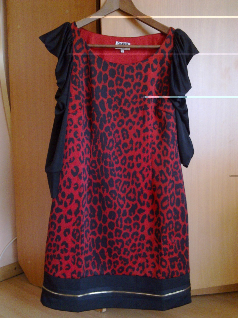 Продам эффектное новое платье CHANEL, приталенное, размер 44-46, длина по спинке 78 см. Цвет красный, принт леопард, черные рукава, низ платья - на черном фоне золотая молния. Модель очень стильная, прекрасно подходит как для особых случаев, так и для повседневных выходов. Цена 2700р. Тел. 8-913-701-49-15