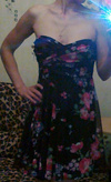 2. Платье с баской. Состав: хлопок с эластаном, почти не тянется. Без бретелей, замочек на спине.