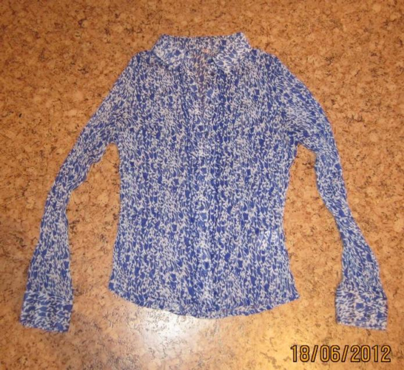 1. Жатая блузочка Zolla на пуговичках, красивого сине-сиреневого цвета. Не мнется, не гладится, стройнит! Размер 42-44-46. Цена 500 руб.