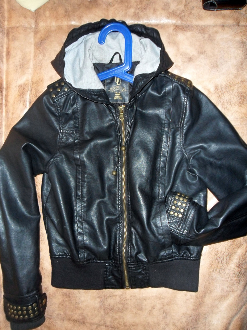 Куртка черная 42-44 р-р, капюшон с трикотажным подклажом, клёпки бронзового цвета, 1800 р.