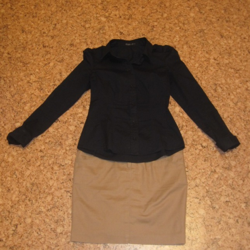 1. Костюм (Брюки, жилетка, пиджак удлиненный и юбка). Цвет темно-зеленый. Мне большеват, размер 44. 1000р торг.