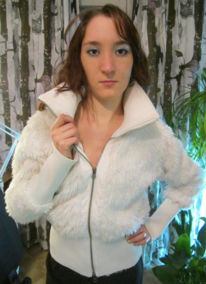 1. Курточка белая из искусственного меха. Размер 40-42. 600р.