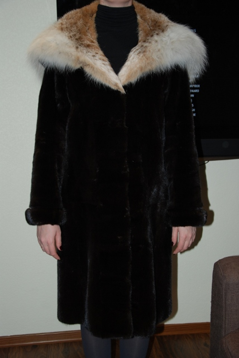 Шуба Греция BlackGlama, капюшон рысь куплена в Снежной королеве за 157 000
