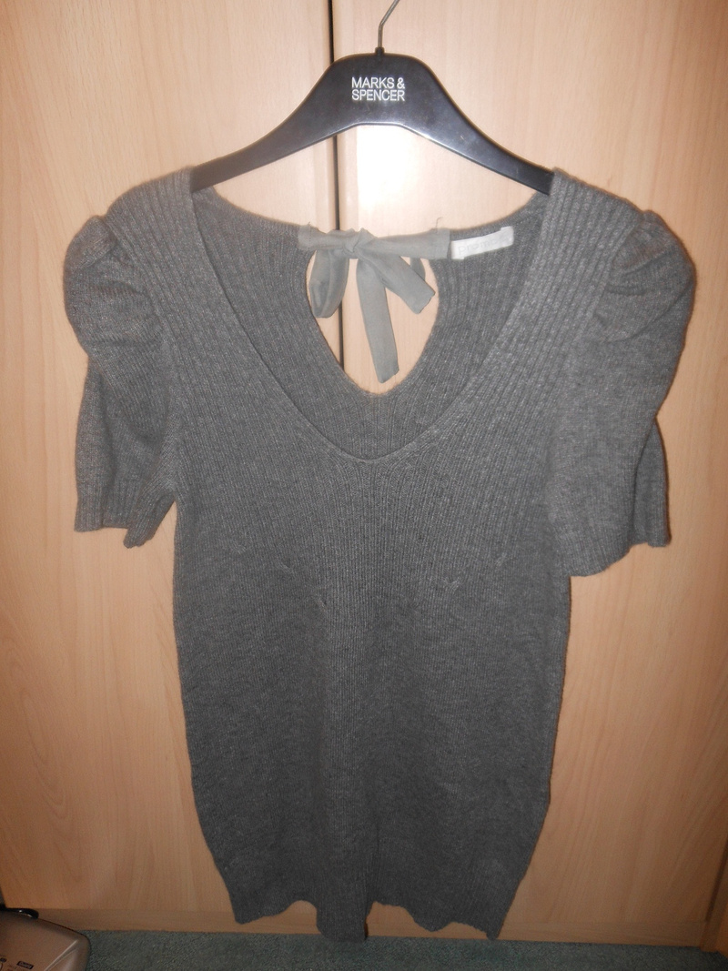 Платьишко Промод новое, тепленькое, с ангорой, рукава присборенные, спереди и сзади вырез, сзади завязывается на бант, размер 38 (наш 46), продам за 300 руб., покупала значительно дороже