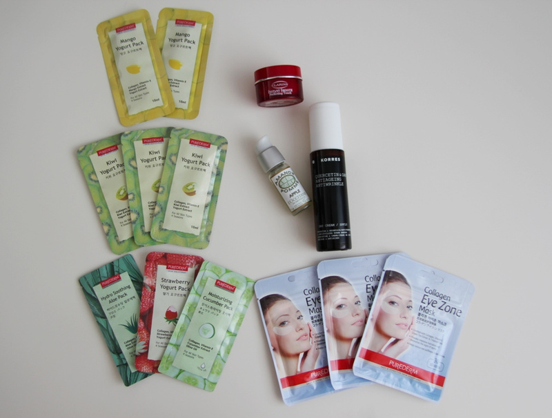При покупке крема,геля для глаз или базы от Кларанс в подарок на выбор три маски или упаковка коллагеновых патчей для глаз