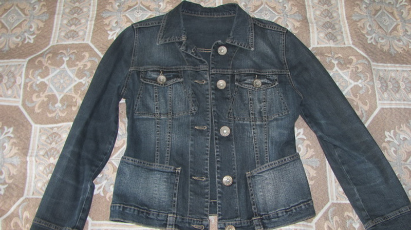 Пиджак, отличного качества, р-р американский 8, 46-46/48, мне на рост 176 коротки рукава (до 170-171, наверное).