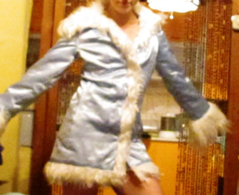 Костюм Снегурочки. Короткая шубка и шапочка с искусственным мехом. Размер 40-42. Подойдет также для стриптиза - шубка на липах
