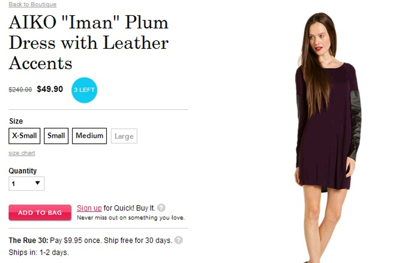 Трикотажное платье, рукава натуральная кожа. Куплено в магазине Rue la la, на фото написана изначальная цена и цена покупки.