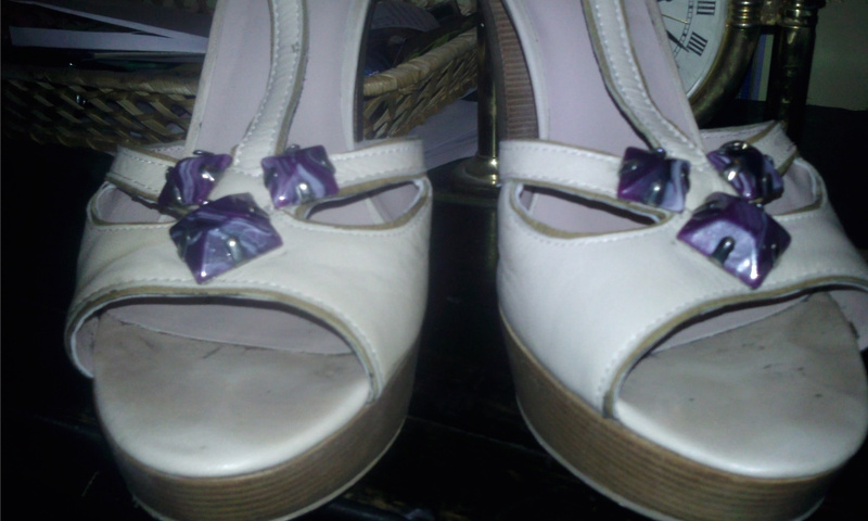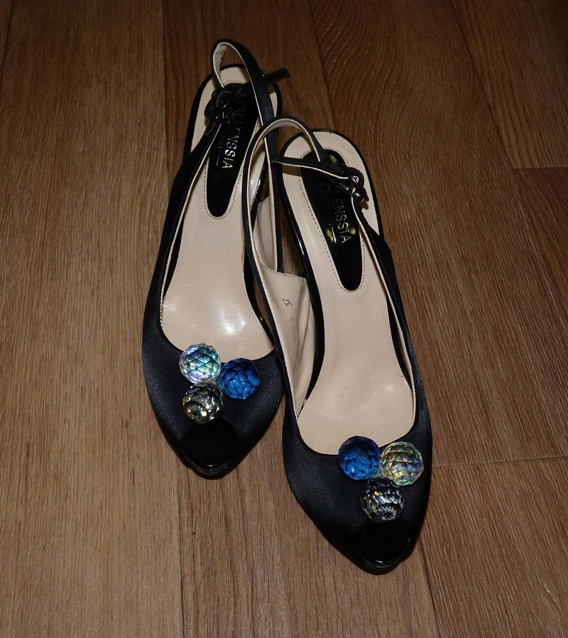 2. шикарные туфельки с камешками. каблук 11 см, из них 2 см платформа. Обуты три раза. Причина продажи та же - травма колена.
