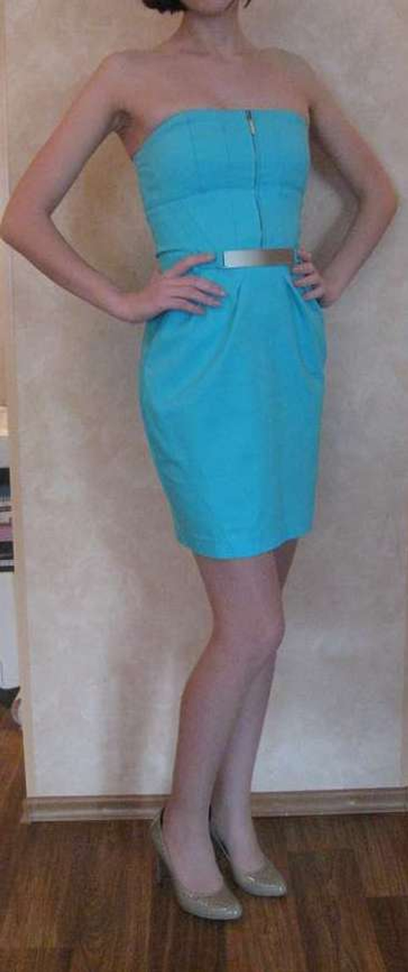Смотрится шикарно!!! Платье на поясе с металлической отделкой. Сзади завязывается на аккуратный бант. Фотографии реально не передают всю красоту и грацию платья!!!!