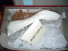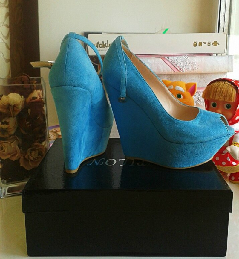 Туфли из иск. замши, необычной формы каблук. Обувались раз на праздник, состояние практически первозданное. Цвет шоколадно-коричневый.