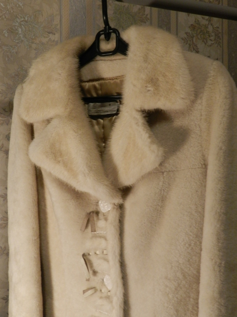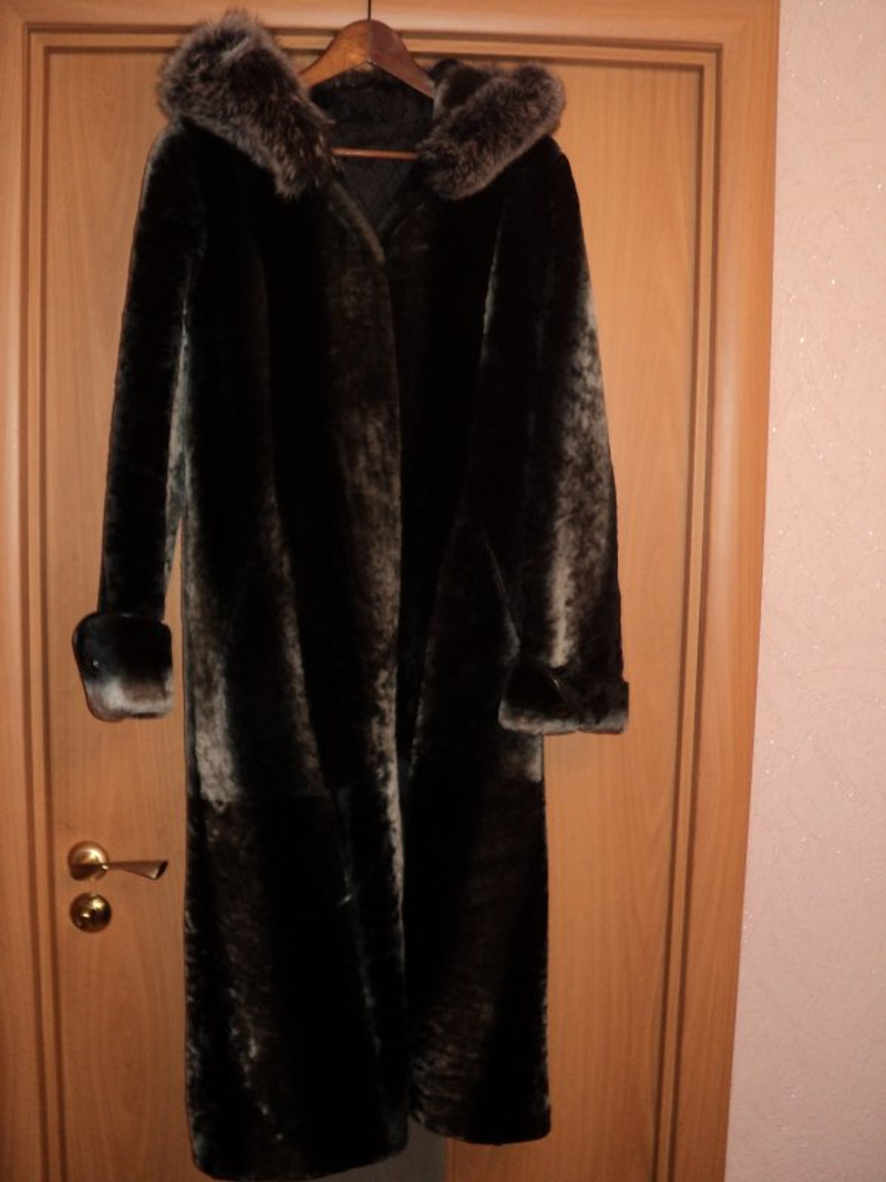 1) мутоновая шуба, фирмы bonita. р-р 44-46, теплая, с капюшоном. Длина до середины бедра.