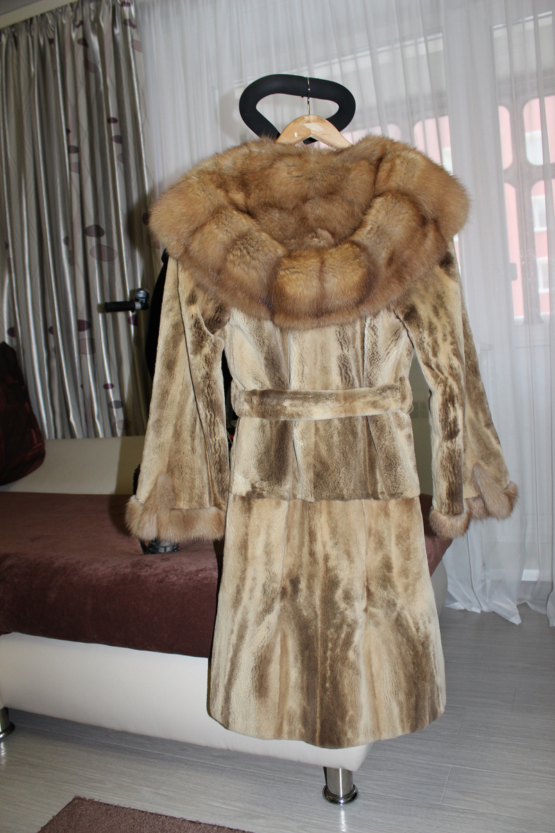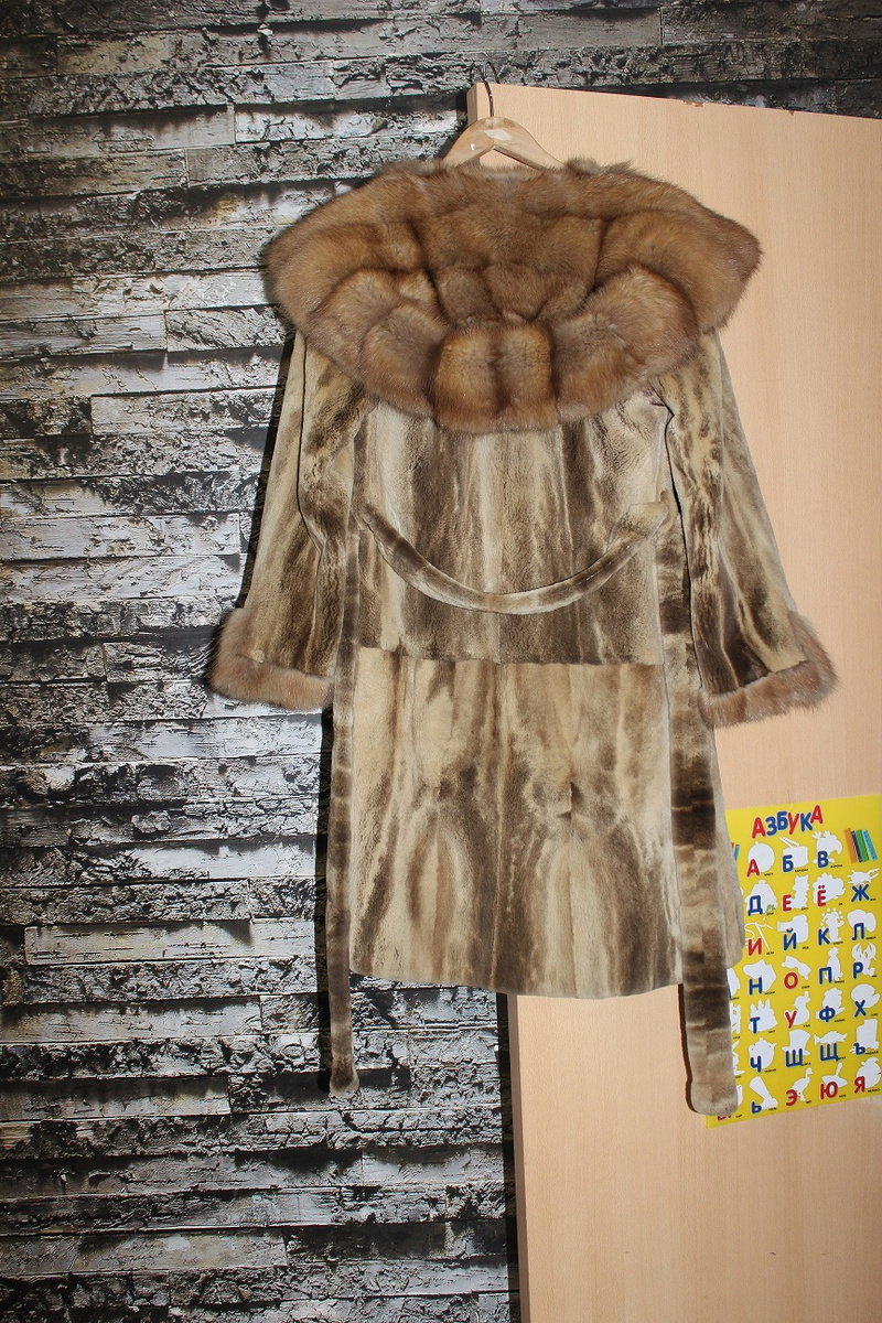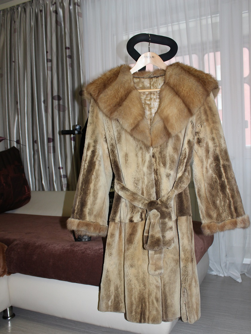 Длина ниже колена . Есть два кармана, врезные -внутри бархат. Застежки-банальные шубные клипсы. Изготовлена из цельных шкур. Модель очень модная и актуальная в этом сезоне , сшита из горизонтальных пластин.49 000 руб Размер 42-44-46 (89130672239 Татьяна)