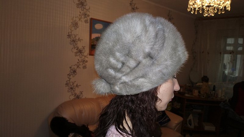4. Норковая шапка. Цвет серебро. Требуется химчистка. 800р