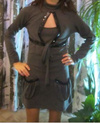 Платье серое. Верх идет отдельно как болеро. На карманах и на болеро черные пайетки. 300р