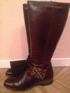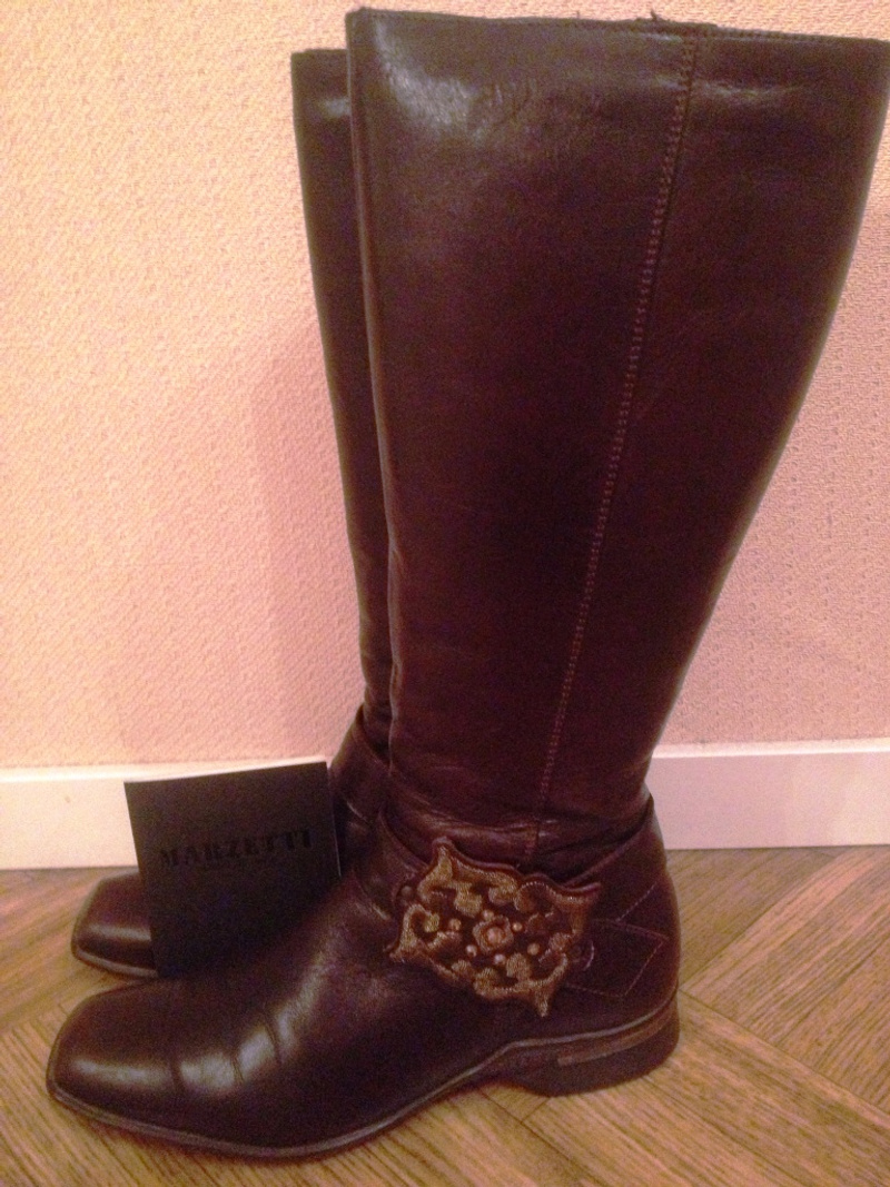 3) Сапоги Marzetti, произ-во Италия. Нат. кожа, зима, теплые. Цвет шоколадный. Кожа на одном сапоге немного потрескалась. Размер по маркировке 37, по факту на 38 подходит. Цена 1000.