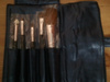 Набор косметических кистей для макияжа в мягком чехле из иск. кожи на завязках. Внутри: 5 кистей (4 из натурального волоса и 1 спонж на длинной ручке). 400 рублей.