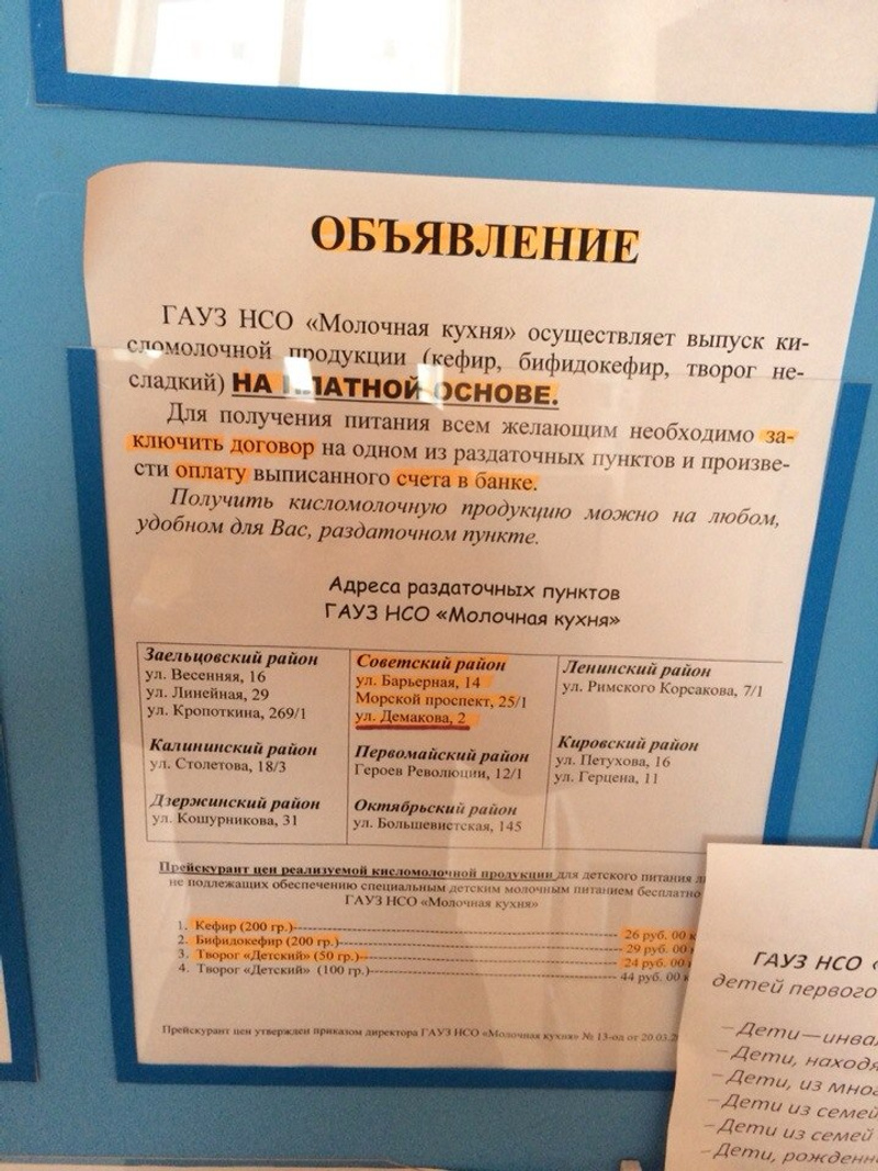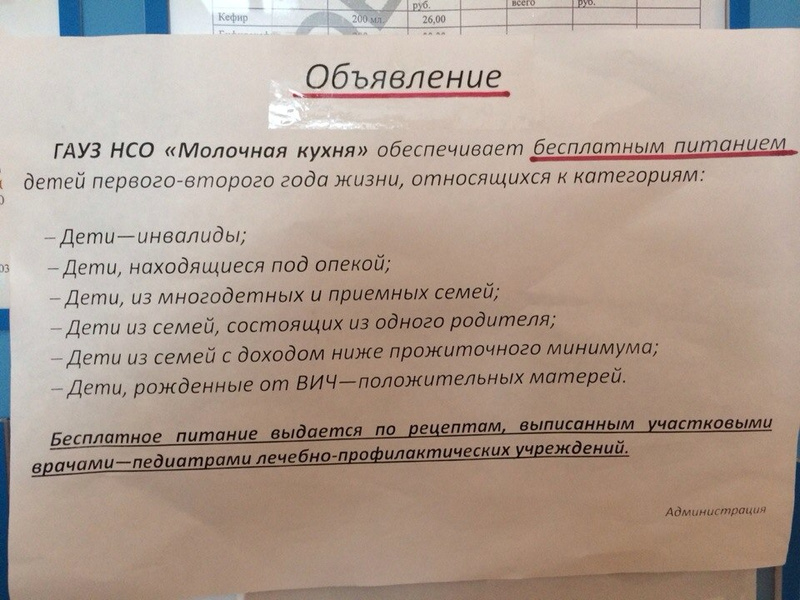 Интересно,а у нас в новосибирск есть молочные кухни,видела одну на ОбьГЭС,но там как я поняла выдавали то многодетным, вообще так сказать льготникам,а вот нам простым смертнымвот сфотанная инфа с нашей молочной кухни. Там есть и адреса всех молочных кухонь, и про то как можно получать у них продукцию, и про то кто может бесплатно получить, и все-все-все.нельзя что ль получать оттуда продукцию?