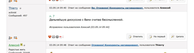 вы сейчас говорите с вашим оппонентом о разных вещах.Вот и мне так кажется, что из-за банального разночтения в терминах возникло все это недопонимание, а жаль, форумчане-то все хорошие, общаемся с Тьерри на другом подфоруме - никогда никаких пунктов 7 не было)) и других пунктов тоже))