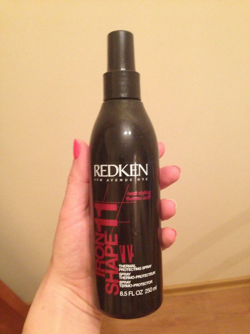 3. Профессиональную термозащиту Redken. Идет в виде спрея, легко наносится, не жирнит волосы. Защищает от воздействия утюгов и щипцов. 250 мл. = 800 руб. Могу отлить в тару, 150 мл. = 500 руб. Покупала в США