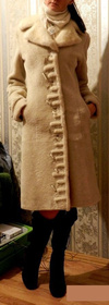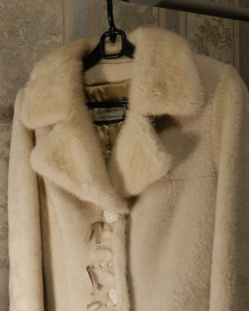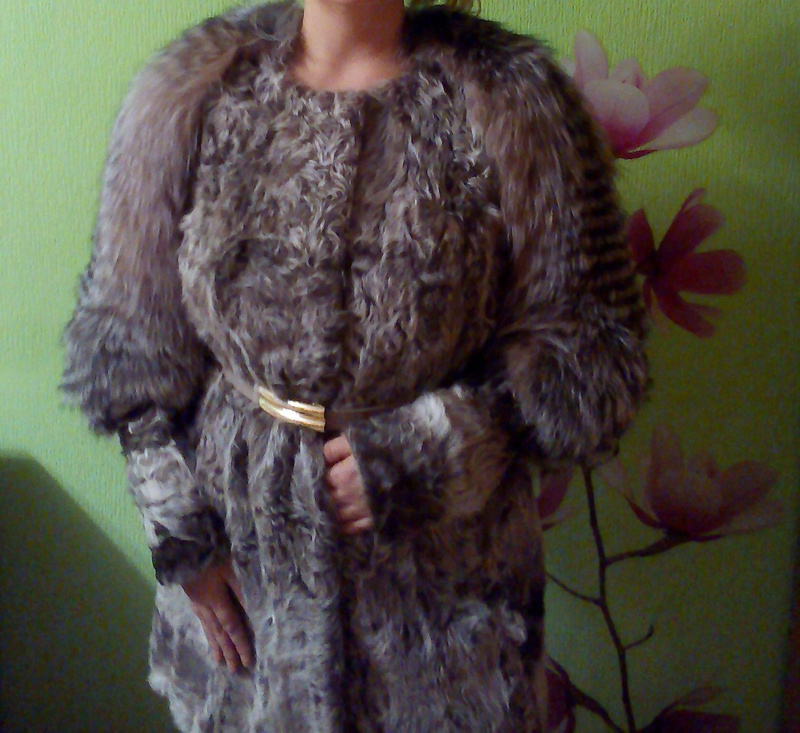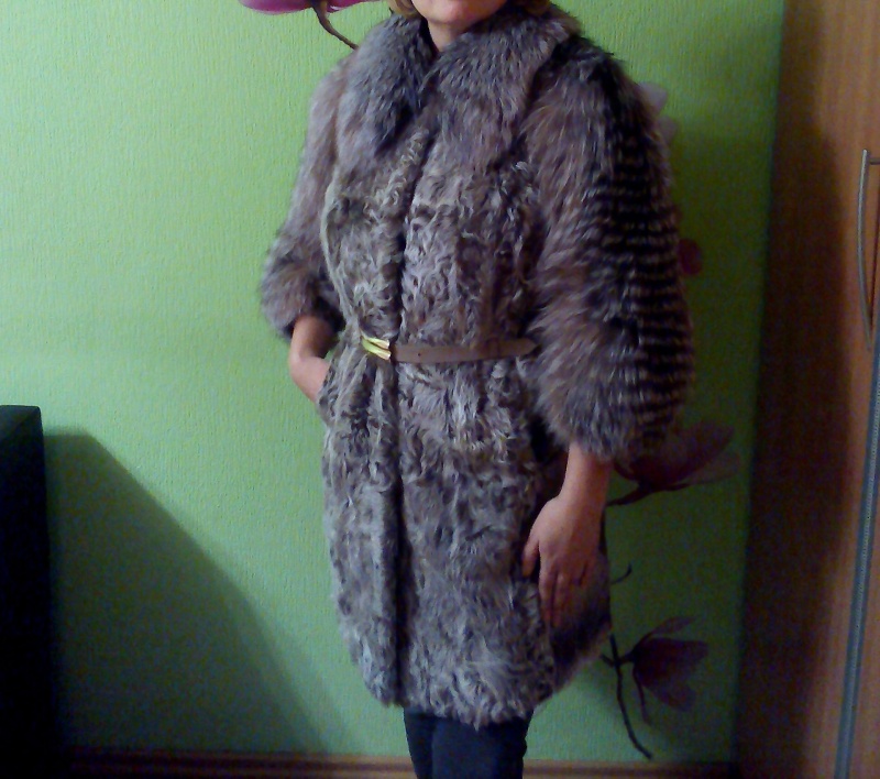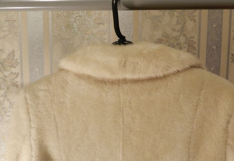 Мех не вытерт, выглядит идеально, без дешевого блеска, который часто встречается у мутоновых шуб. Рукав длинный, длина по спинке около 100 см. На фото рост девушки 170 см, шубка прикрывает колено. Внутренних карманов нет.