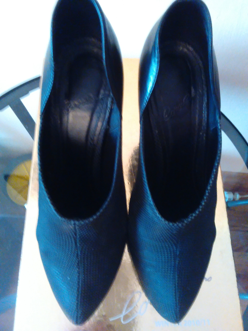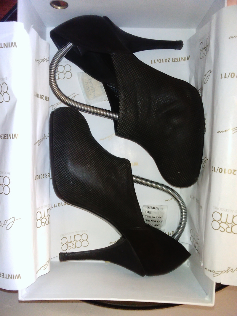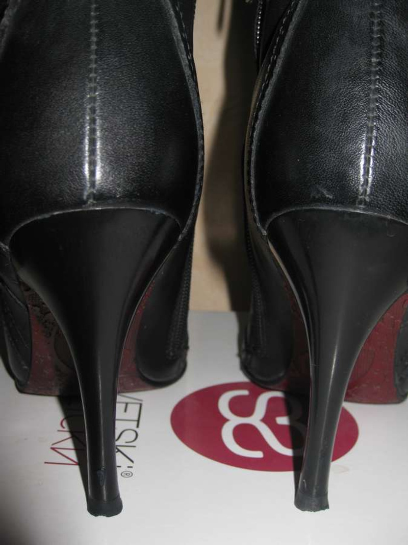 3. Ботильоны corso como, кожа. Задняя часть-гладкая кожа, передняя - перфорированная. Каблук 8 см. Ношены 3 сезона.Состояние на 4-,однако все косячки видны только если разглядывать туфли вблизи.