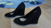 Туфли замшевые, б/у немного, состояние новых, продаю, т.к. высокий каблук - не моё, как ни пыталась)). высота танкетки 10,5 см, фурнитура - золото, маркировка 39, реально на 38 размер, не больше. 1500 руб., связь через личку, район автовокзала.