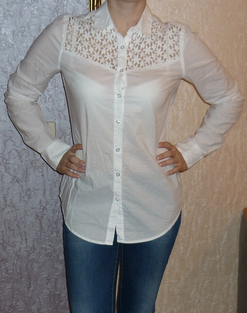 5. Белая рубашка, тонкая, хб, с вышивкой на груди. Покупала в колинсе, одета дважды. Размер 42-44 (М), длина 68, рукава внешняя 62см, внутренняя 49см. Цена 300руб.