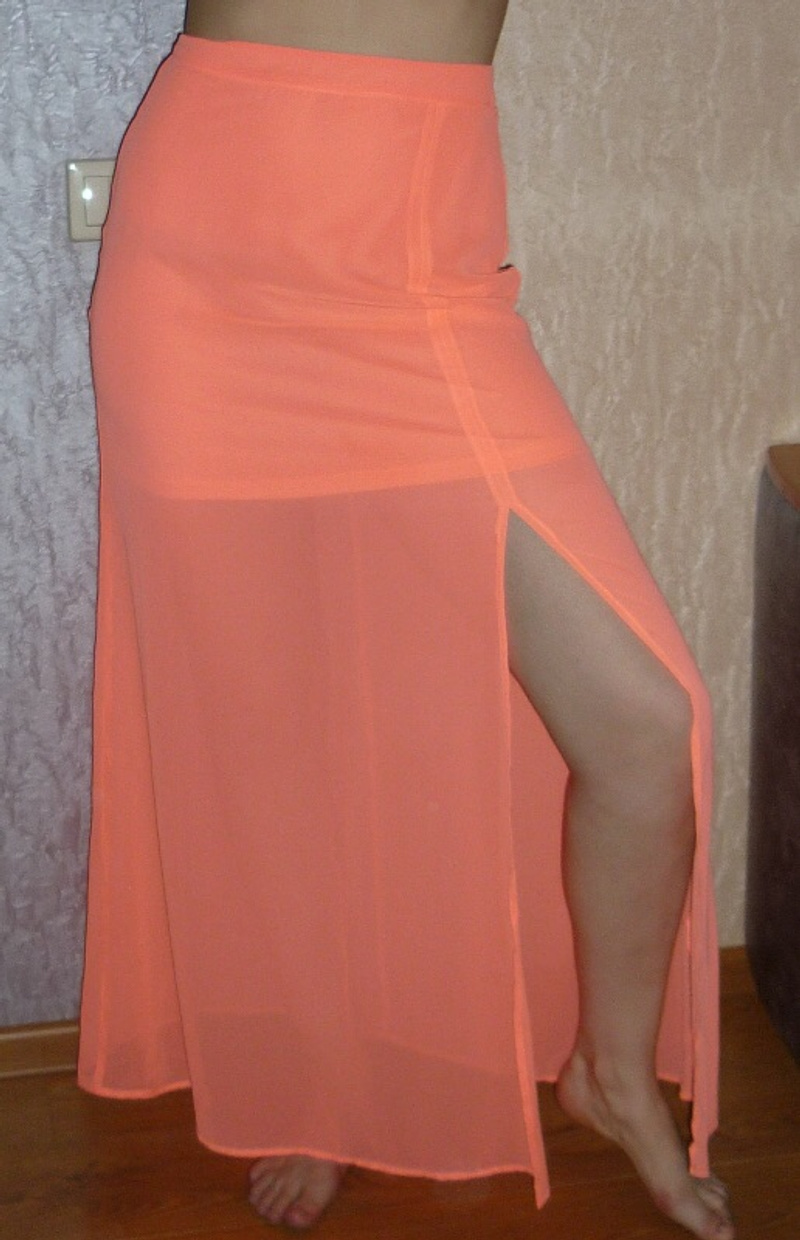 3. Юбка макси, турецкий бренд batik, цвет - неоновый оранжевый, размер - 36,общая длина 112см, длина подклада 40см, длина разреза 66см. Материал - шифон, есть подклад. Новая, ни разу в свет не выходила. Цена 300руб.