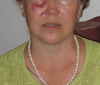 Здесь под глазами сквозь очки видно грыжи, вокруг рта и на щеках дефицит дермы, овал слегка поплыл, даже не смотря на то, что само лицо не склонно к птозу.