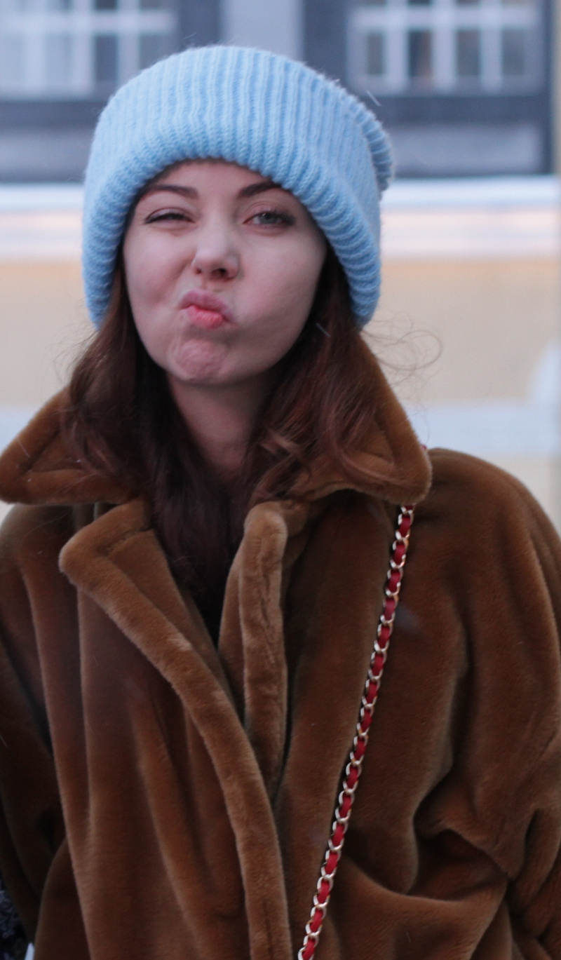мне кажется это пальто должно идти с чем-то небрежным, но все же женственным...а то слишком педофилией отливает, шапка скорее всего не подходит и я бы каблуки надела...Keep calm and makeup on
