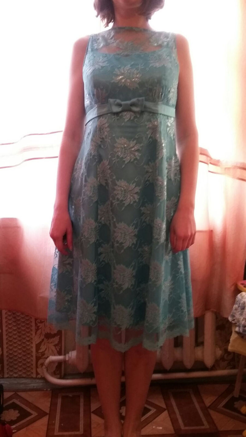 продам платье, сверху кружево, под низом сетка и плисированная ткань,больше даже размер 44-46, на 42 великовато, ошиблась