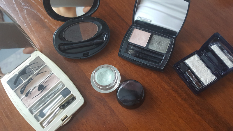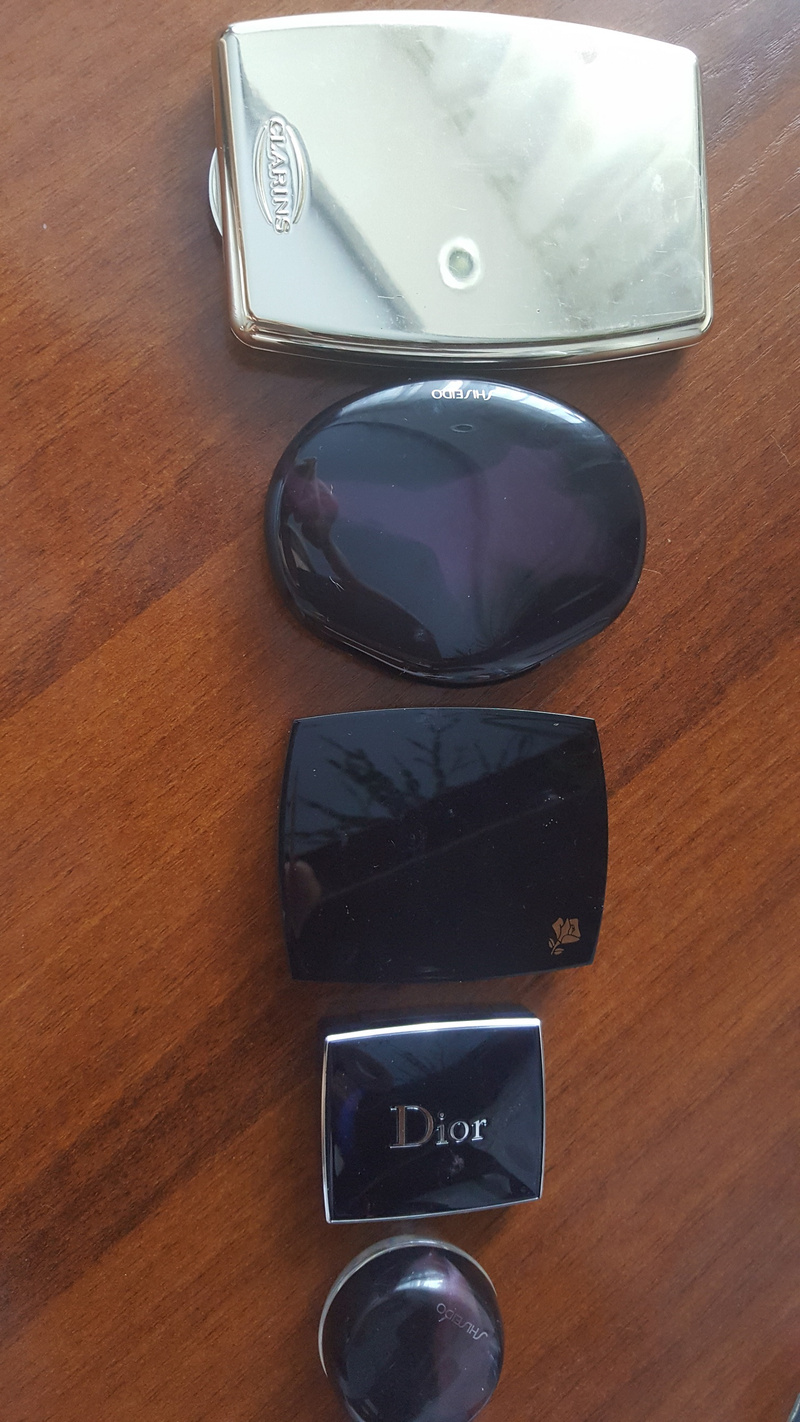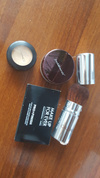 Тени с мельчайшим шиммером, румяна - матовые, аппликатор для теней и зеркало.
