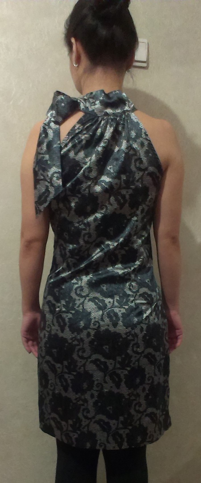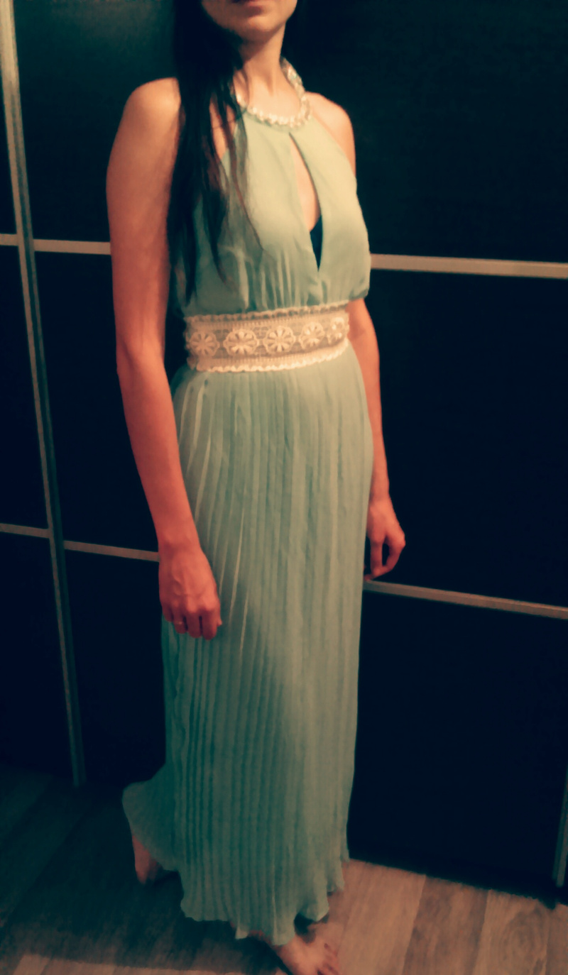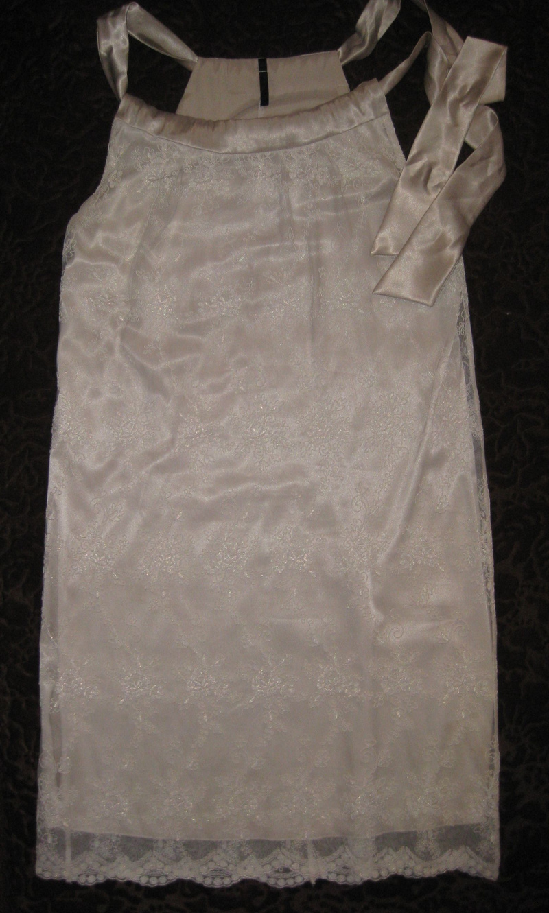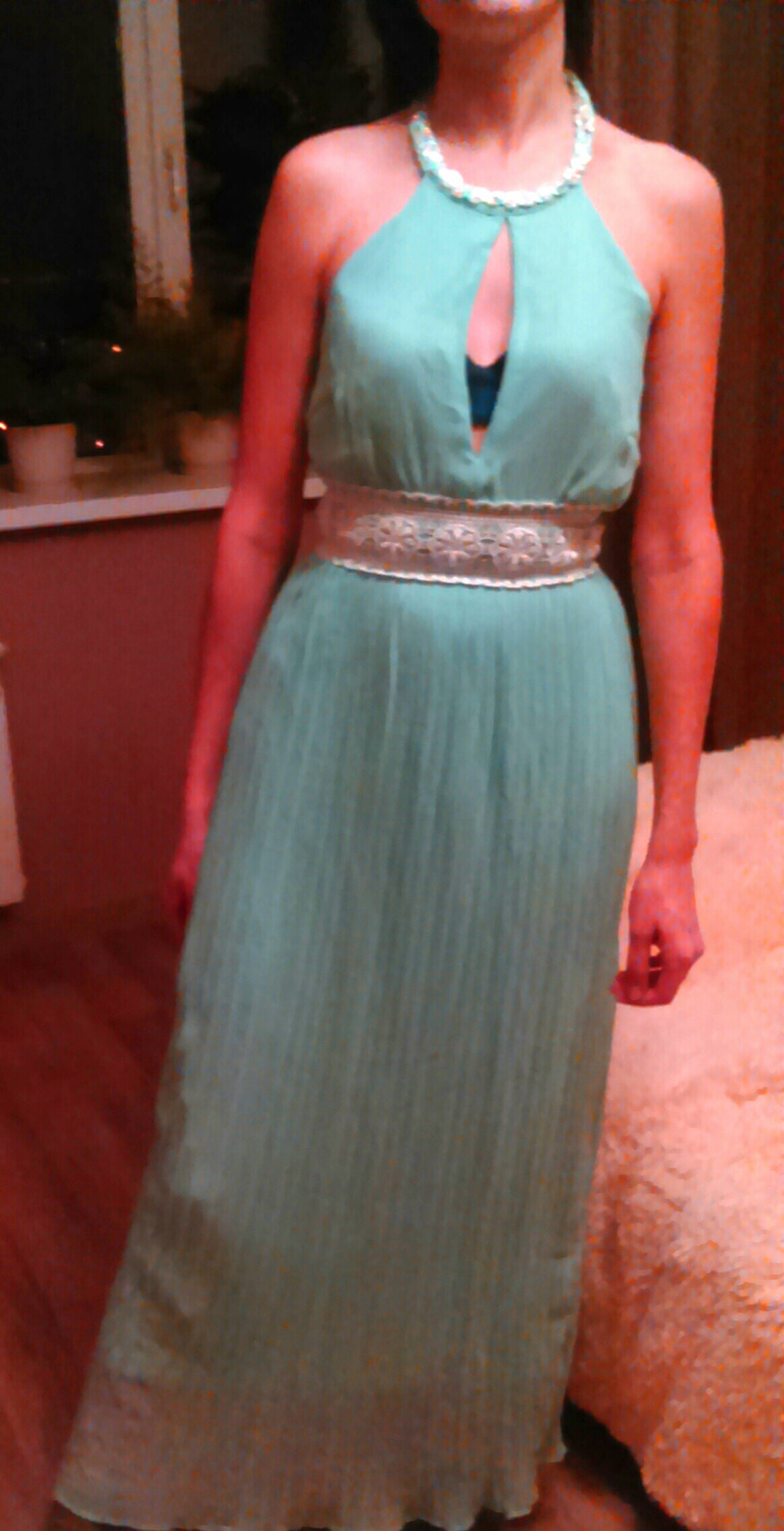 Wink. По бокам разрезы. Надето 2 раза. Размер 44-46, грудь желательно. Smile Намерила по талии 39, бедрам 51, длину от плечиков 144. Думаю хорошо будет на рост 167-170+-.