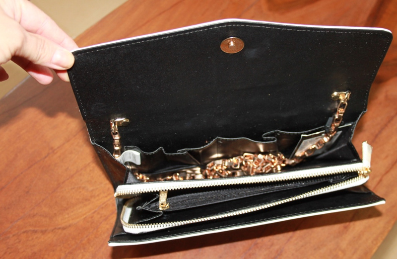 Карманы: внутри - открытые (с одной стороны - один 100*160 мм, с другой - такой же, поделенный вертикальной строчкой на два). Застежка:молния.